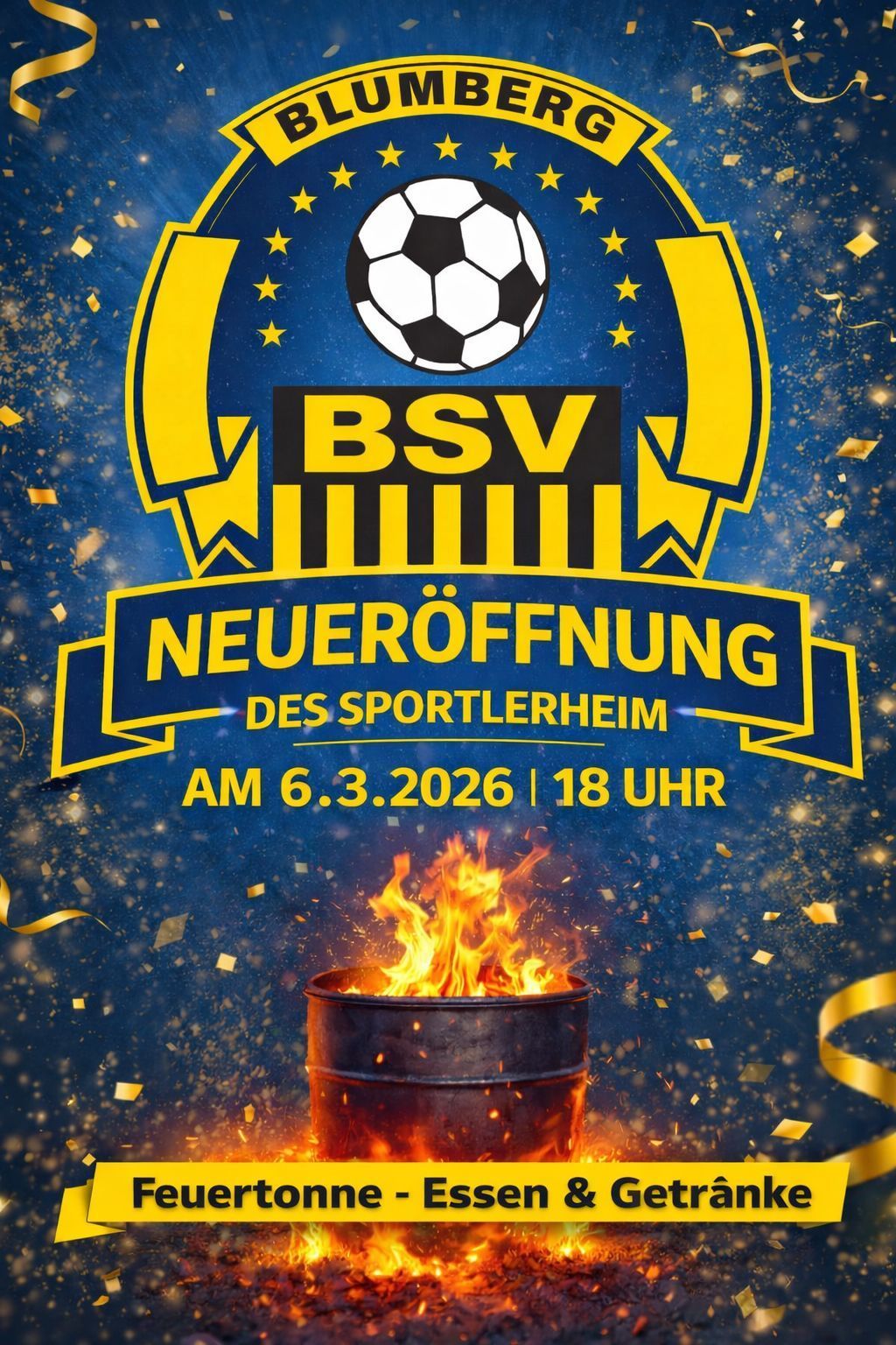 Am 06.03.2026 um 18:00Uhr eröffnet unser Sportlerheim. Nach dann 2 Monaten mit Schweiß, Blut und viel Engagement wurde der Imbiss renoviert und neues Leben eingehaucht. Nicht nur ein neuer Name auch mit neuem Pächter möchten wir euch alle willkommen heißen und freuen uns auf einen Neustart und viele gemütliche Abende mit euch.