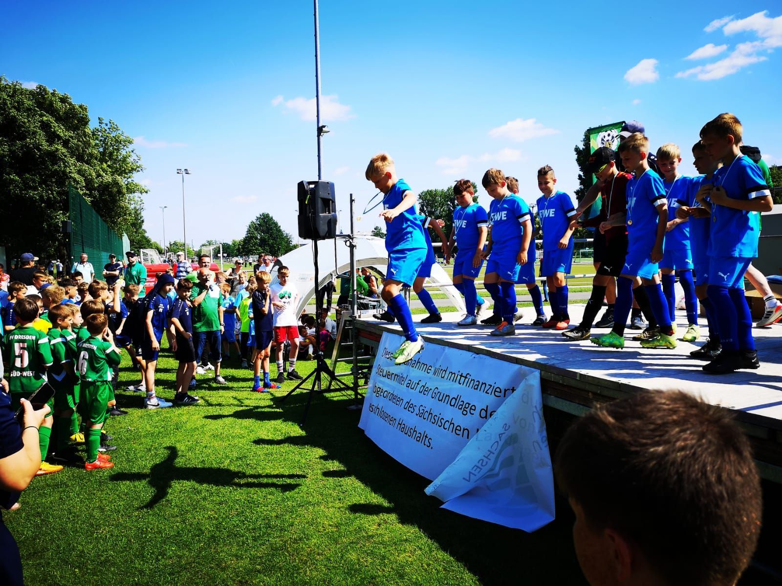 Viel Schlaf gab es also nicht, denn am Morgen des Samstages traf man sich bereits um 07:00 Uhr zum Frühstück, um pünktlich zum Saxony-Cup des Stadverbandes Fußball Dresden vor Ort zu sein. Im Sportpark Ostra wurde der Cup in mehreren Altersklassen auf 15 Spielfeldern ausgetragen und es traten insgesamt 145 Mannschaften zur Eröffnung an.